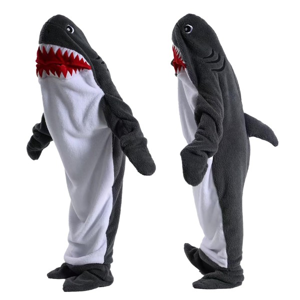 - Cute and novel Hai costume: this cute shark hoodie impresses with its realistic look. This blanket has features reminiscent of shark fins and tail, and a look that wraps around your body and makes you want to push your legs into the shark's mouth and enjoy transforming yourself into a shark character