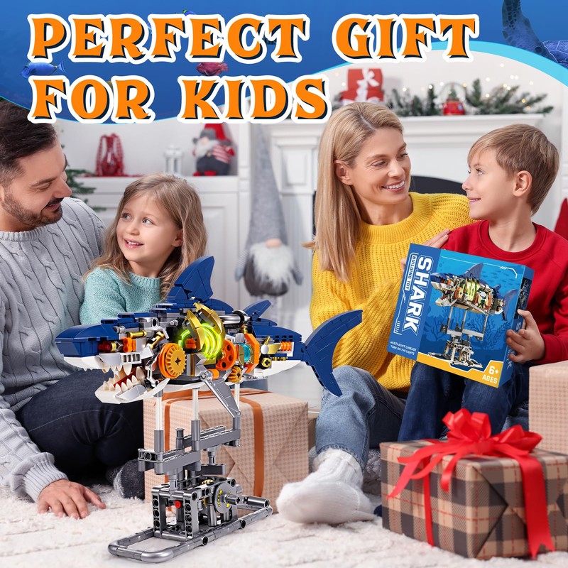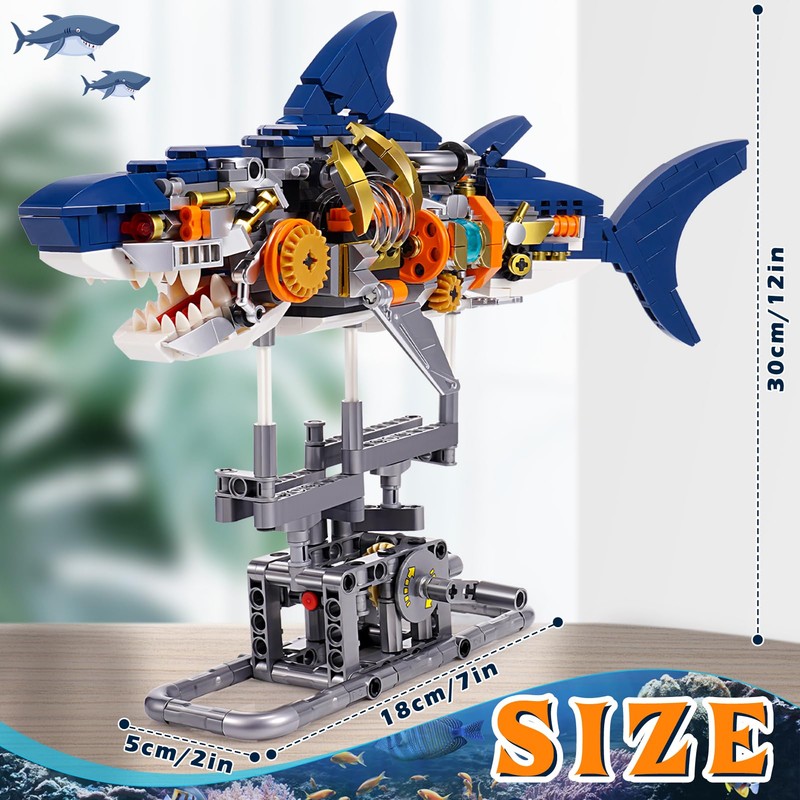 - High-Quality & Safe: Made from high-quality, premium ABS plastic, our blocks have passed rigorous safety tests, ensuring each part is securely connected and won't easily fall apart. With its intricate mechanics and detailed design, this shark toy set is sure to provide children with a sense of wonder and imagination that will last a lifetime.