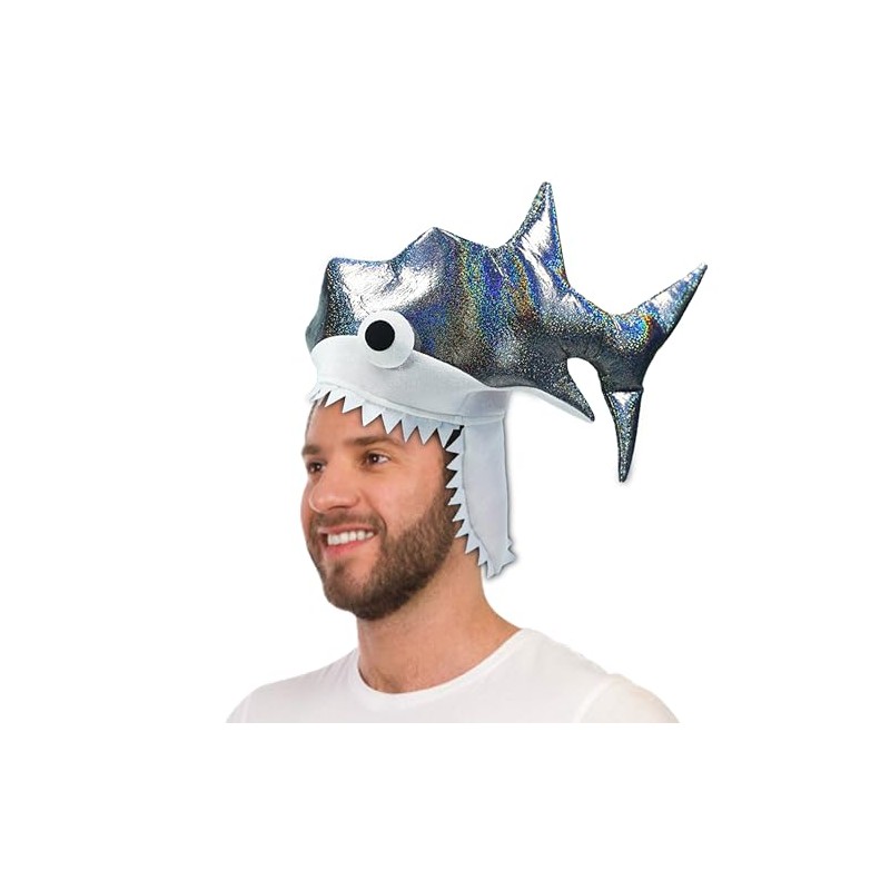 Shark Hat. Twinkling Silver Shark costumeHeadwear. Handmade Party Crazy Shark Hat with 3DEmbroidered Eyes.One Size Fits Most