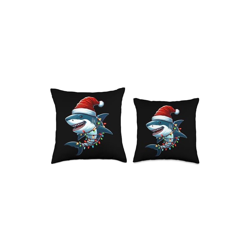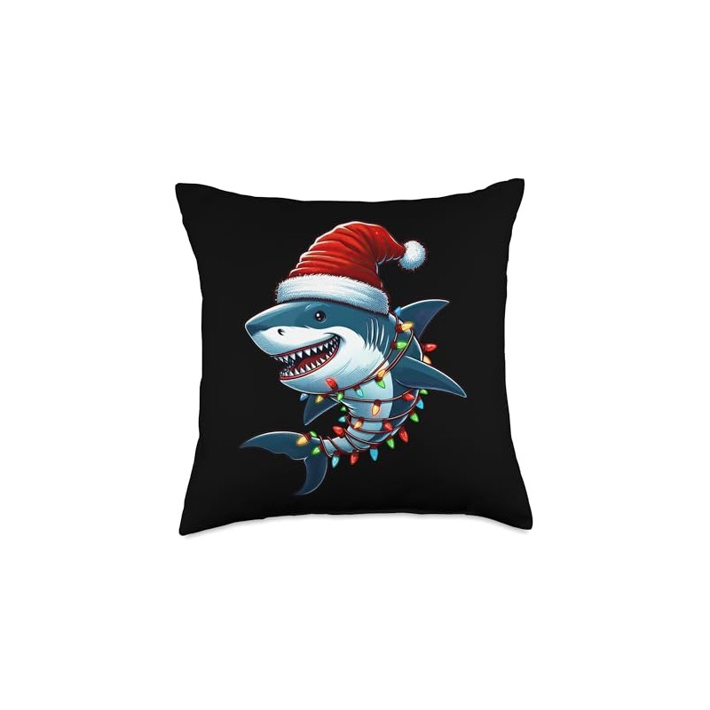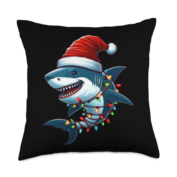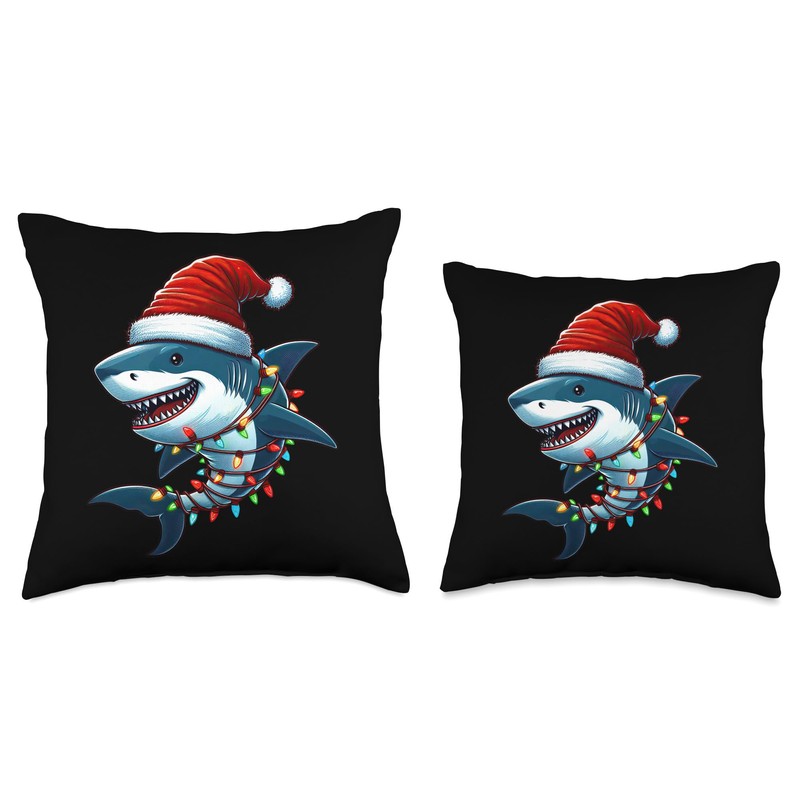 Shark Santa Hat Christmas Lights Sharkmas Tree Boys Girls Throw Pillow