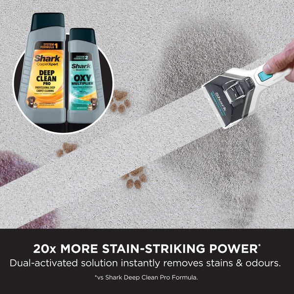 - Lifts and extracts stubborn stains and odours, mixing together with Shark's CarpetXpert Deep Clean Pro Formula and activating as you clean, targeting and removing even the toughest stains