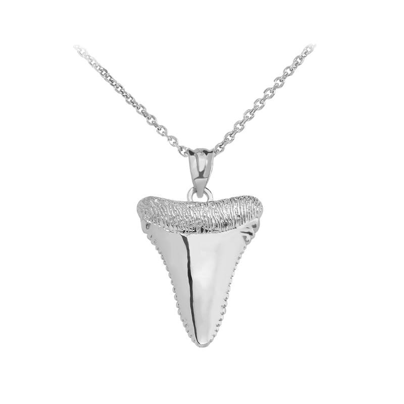Shark Tooth Fine Pendant Necklace with 20" Rolo Chain Real Solid .925 Sterling Silver