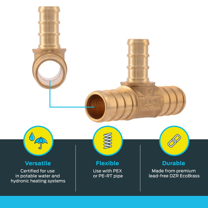 - COMPATIBILITY: Brass crimp reducing tees work well with PEX and PE-RT pipes