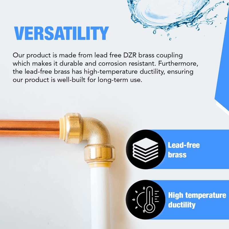 Fabricada en latón DZR sin plomo (dezincification resistente) que proporciona un ajuste fuerte, durable que es resistente a la corrosión.