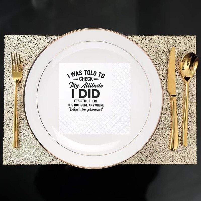SharkBliss Funny Sarcastic Quotes Cocktail Napkins, 100 Pack I Was Told To Check My Attitude Funny Stubborn Whats Problem Cocktail Napkins For Birthday Retirement 2-Ply, 5x5" (Check My Attitude)