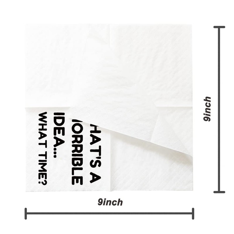 - ❤ Diseño único: este tipo de servilleta está impreso con la fuente "That's A Horrible Idea What Time" en ella; esta bonita servilleta impresa es adecuada para nuestras fiestas de aventura comienza