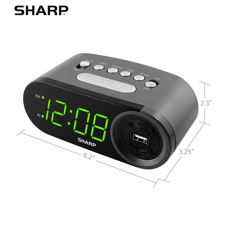 Sharp Digital Easy to Read Alarm Clock with 2 AMP High-Speed USB Charging Power Port - Charge Your Phone, Tablet with a high Speed Charge! Simple, Easy to Use Operation, Black – Green LEDs