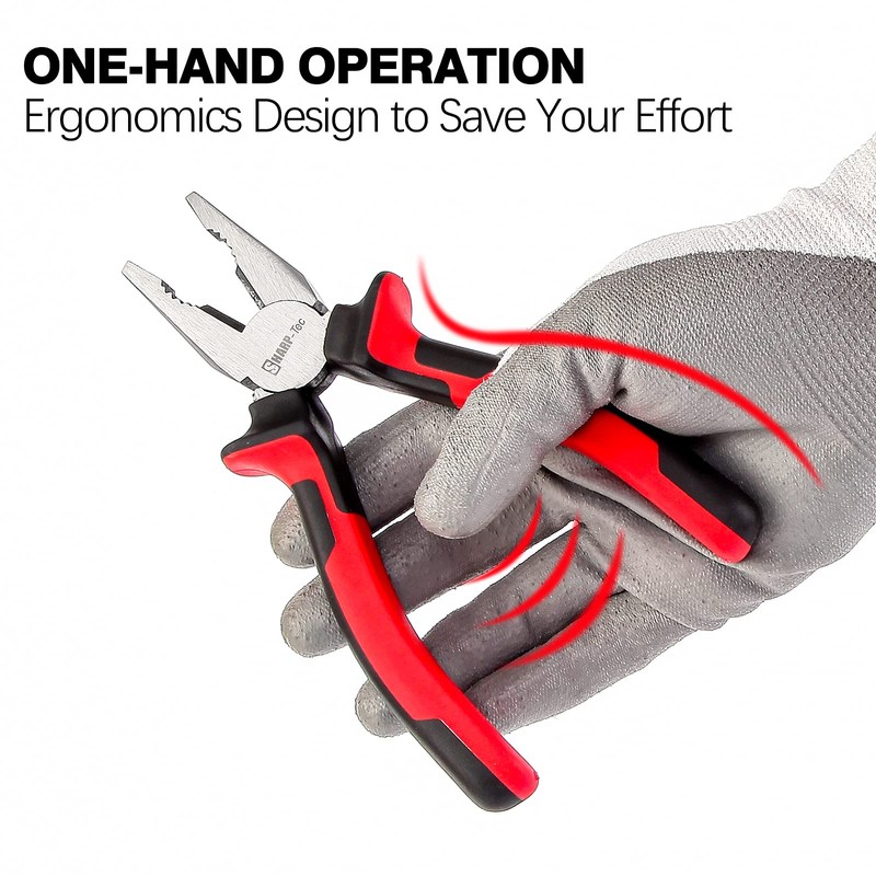 • 【Non-slip Handles】—— The combination pliers have a comfortable and secure design. Side cutters pliers unique handle tempering helps absorb the ''snap'' when cutting wire. The handle is made of environmental PP+TPR materials, provides extra comfort, and reduces hand fatigue.