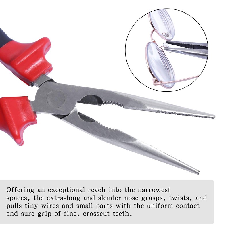 - 【High-Quality Design】 — 200mm long nose wire pliers are made of high carbon steel, overall heat treatment, provide extra strong and durable jaws and cutting edges, crosscut teeth distribute force evenly for sure grip in any direction.