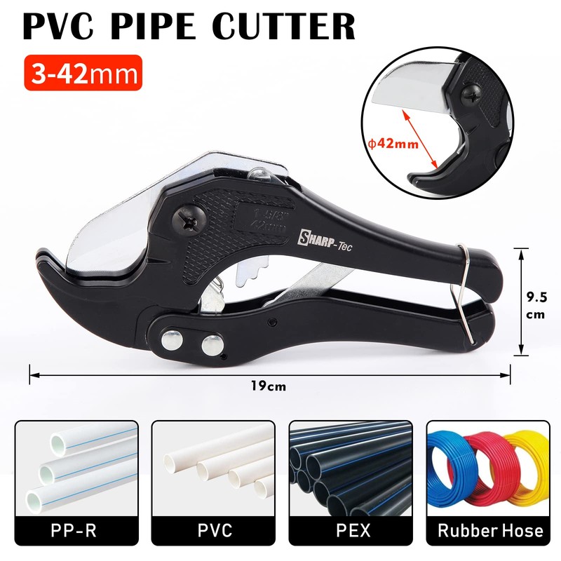 Sharp-tec PVC Pipe Cutter 3-42mm, Heavy Duty Ratchet Plastic Pipe Cutting Too...