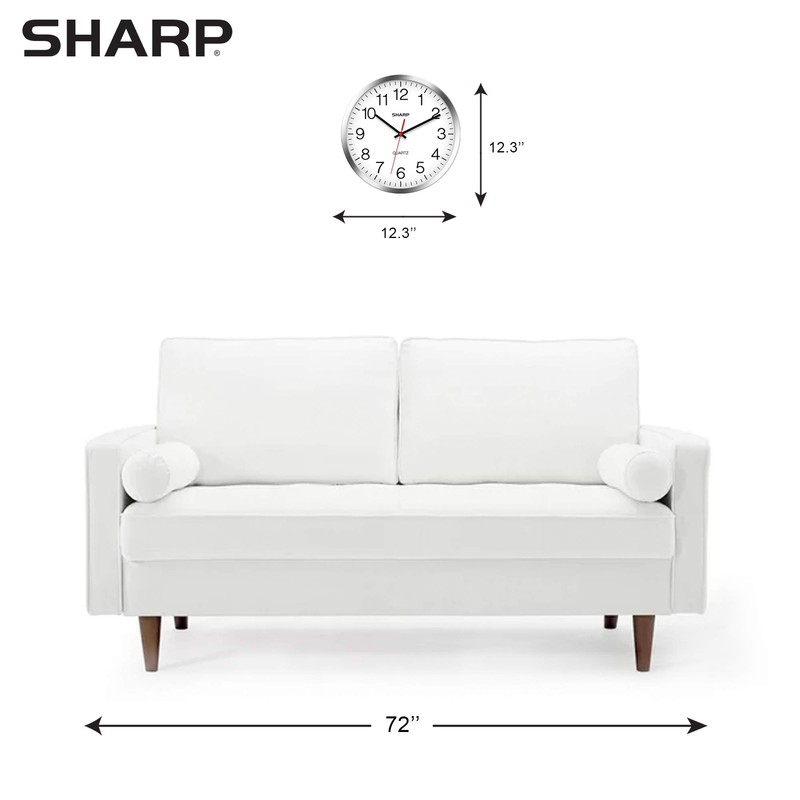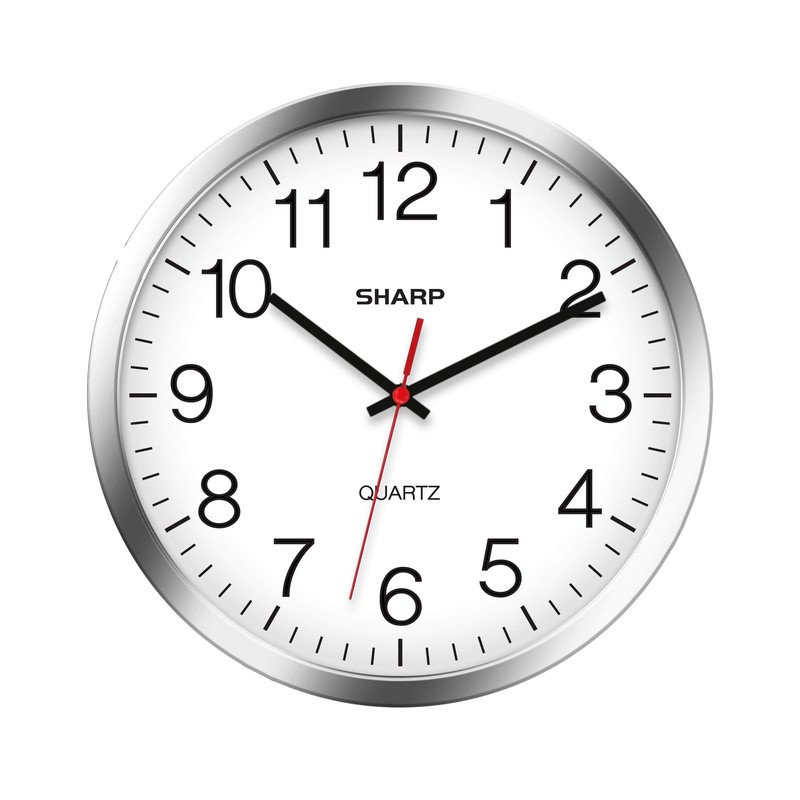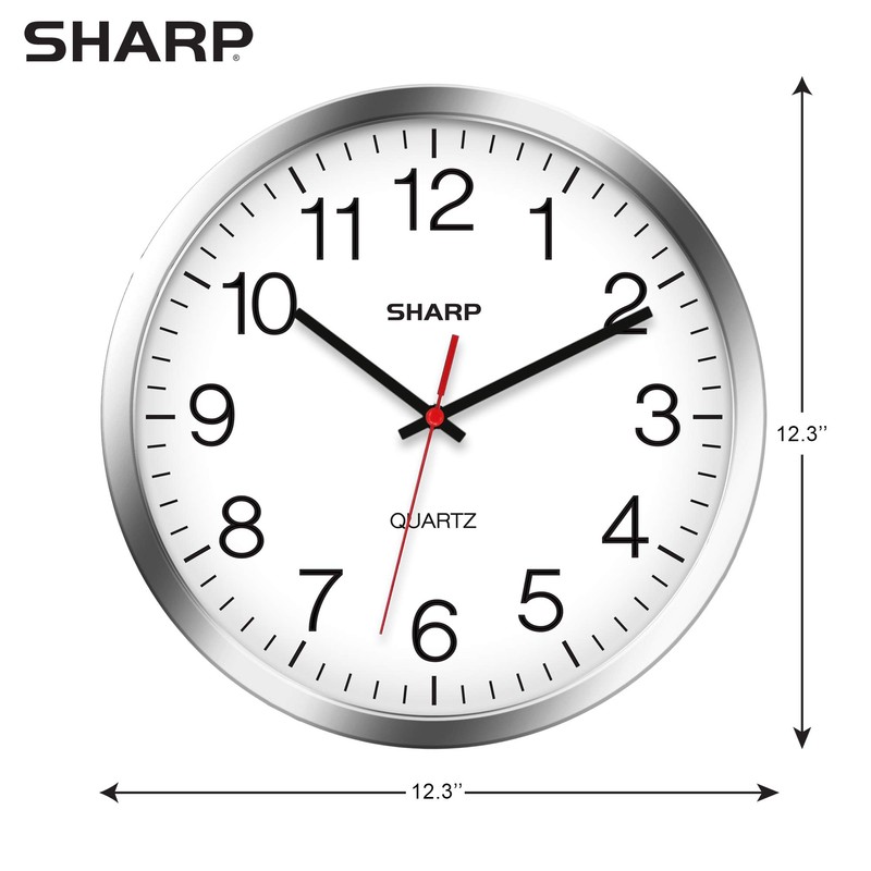 SHARP Wall Clock – Silver/Chrome, Silent Non Ticking 12 Inch Quality Quartz Battery Operated Round Easy to Read Home/Kitchen/Office/Classroom/School Clocks, Sweep Movement