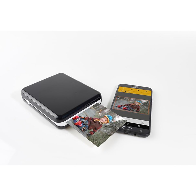 - #1 PORTABLE PRINTER! The Portable Photo Printer by Sharper Image works with all iPhones, iPads and Galaxy/Android devices to make 3” x 3” color prints in seconds. It’s cordless and rechargeable, so you can take it wherever you go. Simply download the free app to crop, edit, apply filters and create your own photo collages. App compatible with iPhone/iPad (iOS 9.0 or later) and Galaxy/Android (OS 4.0.3 or later). Includes 1 cartridge with ink and 10 photo papers.