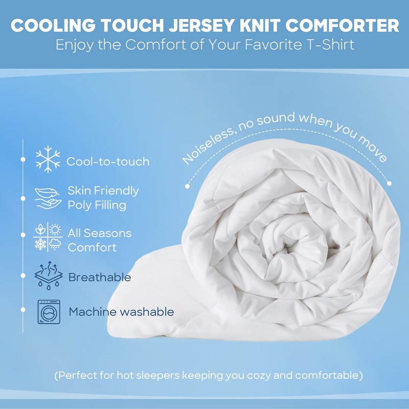 - Feel Cool and Comfortable Comforter - Enjoy the comfort of your favorite t-shirt with our cool jersey knit comforter. Soft to the touch, cool and silky smooth, it's the perfect bedding for warmer nights & hot sleeper keeping you cozy and comfortable