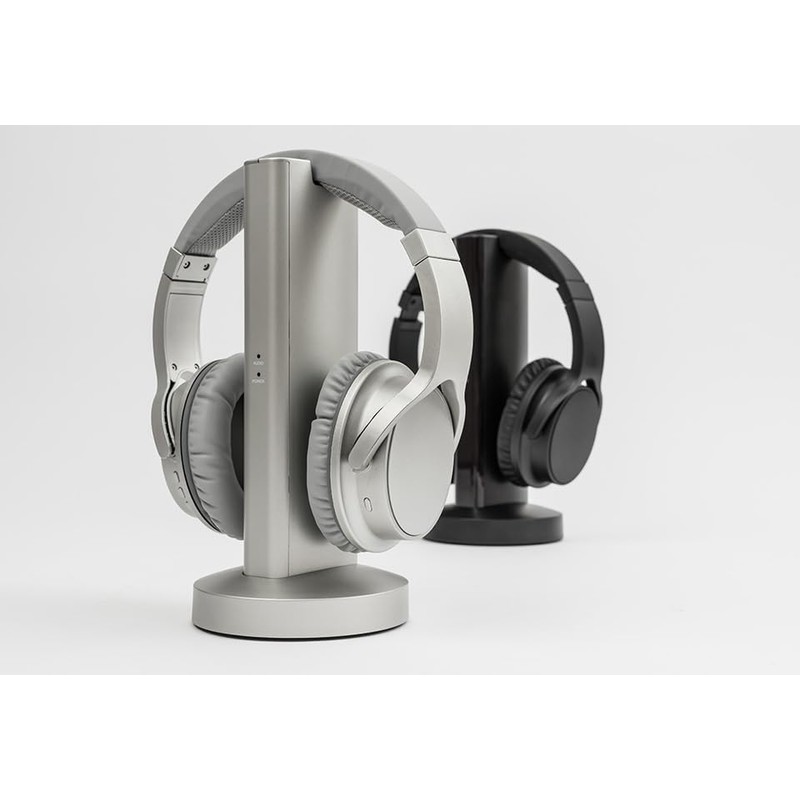 - NOW WITH DIGITAL CONNECTION! TV Wireless Headphones let you enjoy TV without disturbing others. Just connect the transmitter/base to your TV, slip on the headphones and enjoy your shows, up to 160 feet away. Headphones charge easily on the base. Runs up to 20 hours on a full charge. Compatible with virtually all TVs, including Smart TVs with digital optical audio output ("TOSLINK"). Available in Black or Silver.