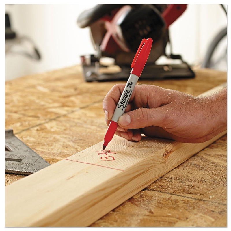 Sharpie Fine Point Permanent Markers deliver precise, bold lines for art projects or home organization and office tasks. The fade-resistant and waterproof ink writes on most surfaces, including wood and glass. Each permanent marker features smudge-free ink that dries quickly and clearly. Marker Type: Permanent; Color(s): Red; Tip Type: Fine; Ink Types: Non-Washable.