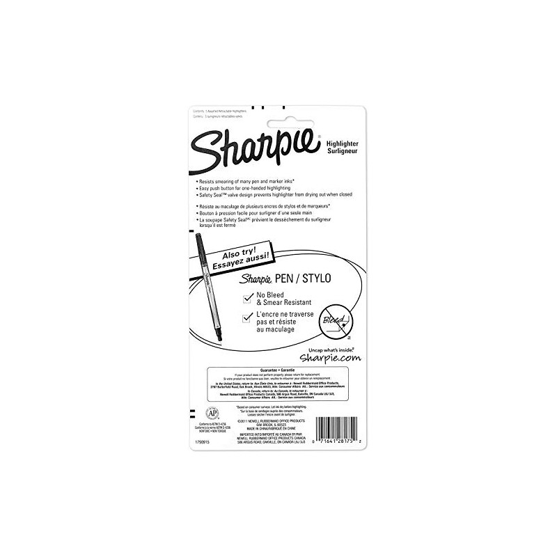Draw attention to important information in notes, text, and documents with Sharpie Retractable Highlighters. The 5 bright fluorescent colors make it easy to read highlighted text and emphasize important passages. Quick-drying ink helps prevent smudging when highlighting over pen and marker inks. And the retractable design prevents your highlighters from drying up and makes for easier storage.