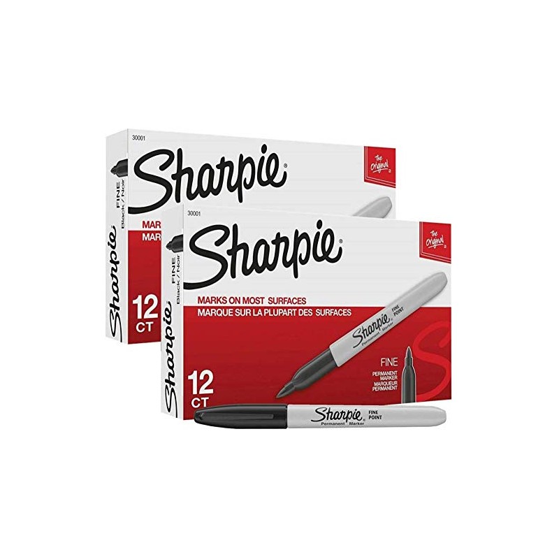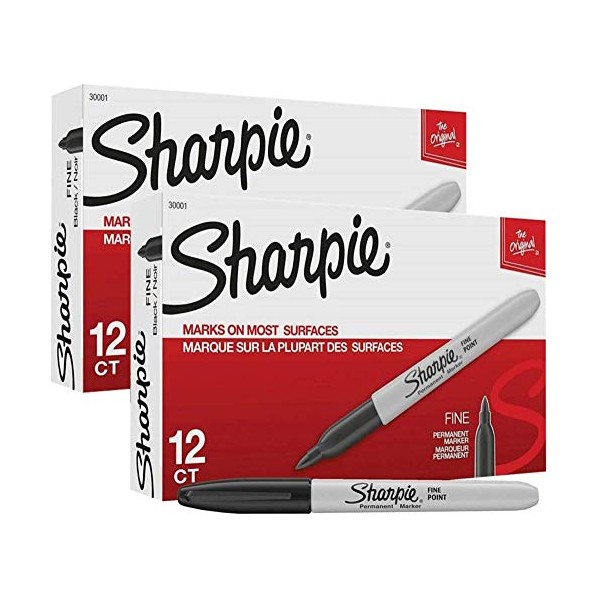 Sharpie Permanent Markers, Fine Point, Black, 2 Boxes of 12 Total of 24 Markers
