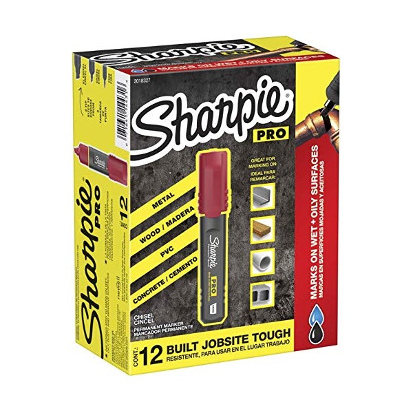 Sharpie Pro Permanent Marker, Medium, Chisel Tip, Red, 12-Count Marker (2018327)