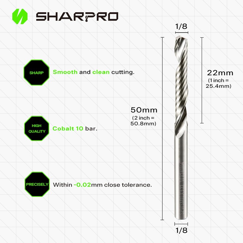 SHARPRO O Flute Upcut Spiral Rouer Bit 1/8 Inch Shank 1/8 Inch Cutting DIA. Carbide Single Flute CNC Router Bit, Ideal for Aluminum, Plastic, Acrylic, Wood, MDF and PVC