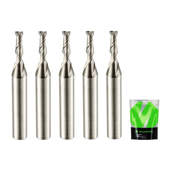 SHARPRO Upcut Spiral Router Bit Set 1/4 Inch Shank 1/8 Inch Cutting Dia. CNC Up Cut Router Bit Solid Carbide, Ideal for Wood Cutting, Slot Mortise, Engraving (5PCS)