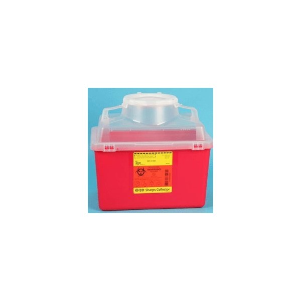 14.0 qt BD nestable multi-use Sharps Collector. Red with large funnel entry. Solid cap closure for leak resistant transit. Autoclavable.