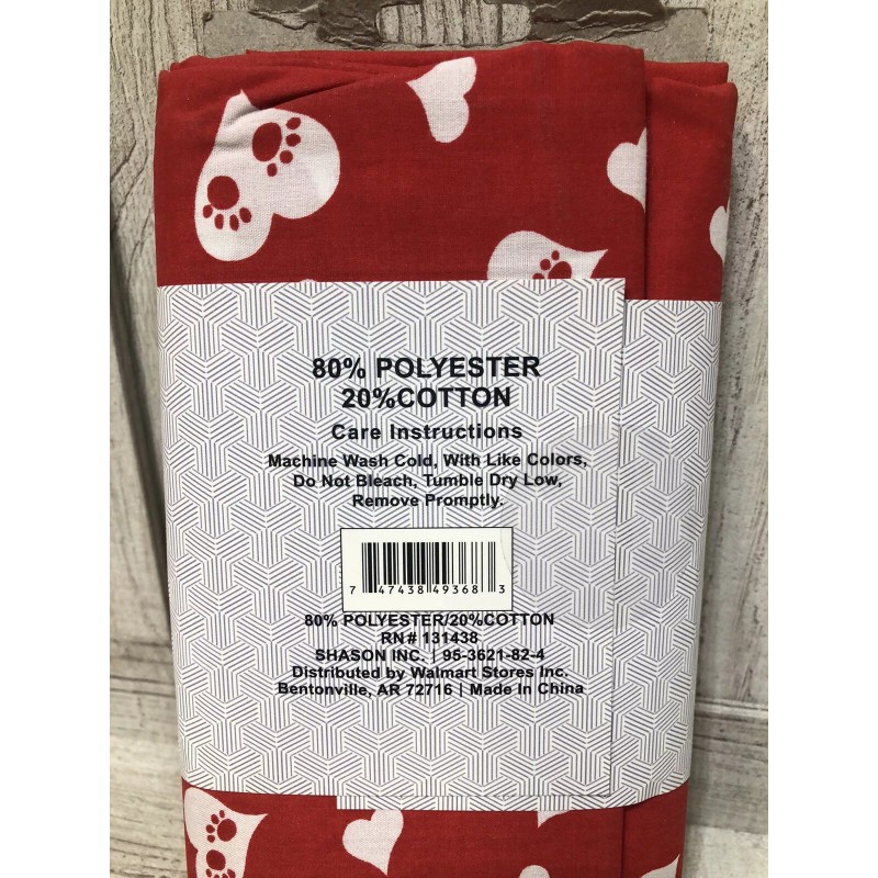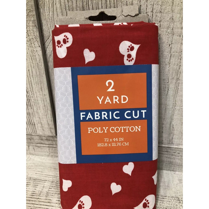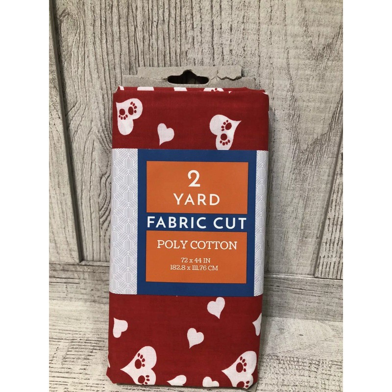 This Shason brand fabric is perfect for any dog lover! The 72" x 44" cut fabric features a fun hearts pattern with paw prints in red and white, making it a great choice for accessories like bags, gloves, hats, and even quilting or bedding. The poly cotton blend material is soft and durable, ensuring it will last through multiple uses.