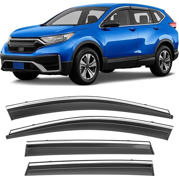 Shatterproof Taped-On Window Deflectors for Honda CR-V 2017-2022 with Chrome Trim, Rain Guards, Window Visors for Cars, Vent Deflector, 4pcs