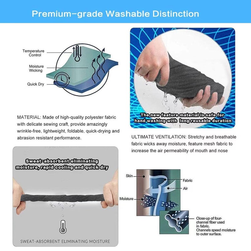 - Premium-grade Washable Distinction: The new feature material of this face neck gaiter is safe for hand washing.Less amount of cleaning fluid can achieve great cleaning effect and long reusable duration.