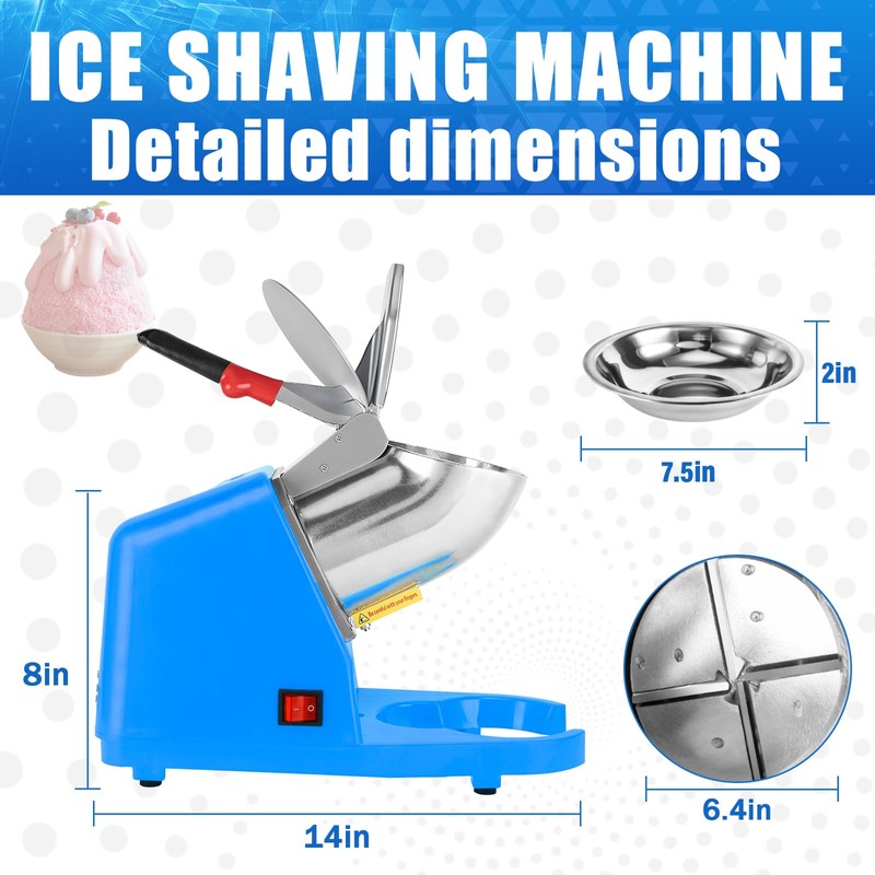 Shaved Ice Machine - Electric Ice Shaver Machine with 4 Stainless Steel Blades, Snow Cone Maker Ice Crusher (300W 2200r/min) for Home & Commercial Use, Prevent Splash, with Ice Pick & Bowl, Blue