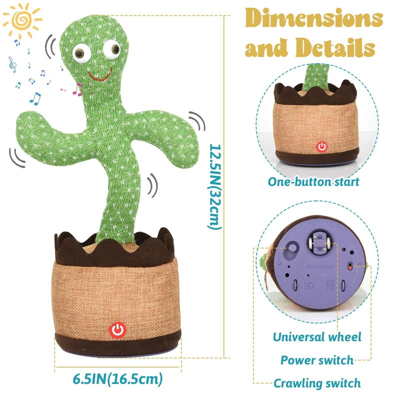 - 【Singing Dancing Talking Plush Toy】: The electric Singing Dancing Talking cactus. The LED light can make the talking cactus toy twist the body along with the light, which is very attractive. The cactus toys for kids will repeat what you said in a funny voice.