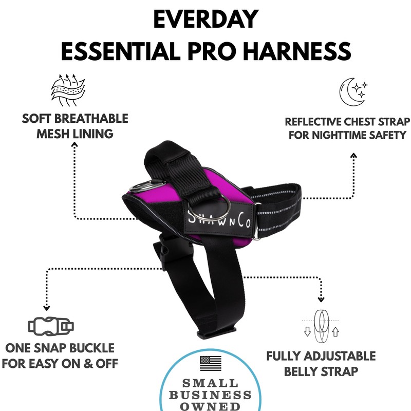 ShawnCo Essential Pro Dog Harness, No-Pull Pet Vest with 3 Leash Clips and Removable, Reflective Side Patches, Adjustable and Padded Harness for Small, Medium and Large Dogs (Orchid, M)