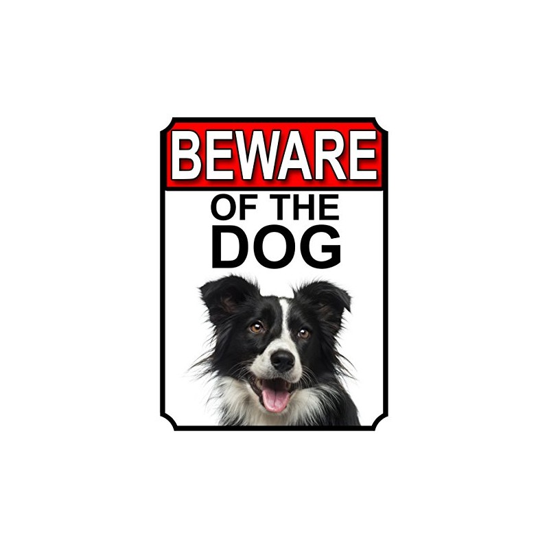 SHAWPRINT BEWARE OF THE DOG METAL GATE SIGN BORDER COLLIE 200MM X 150MM (1114H1)