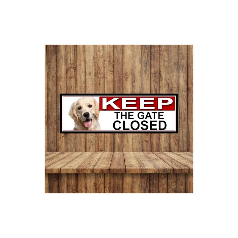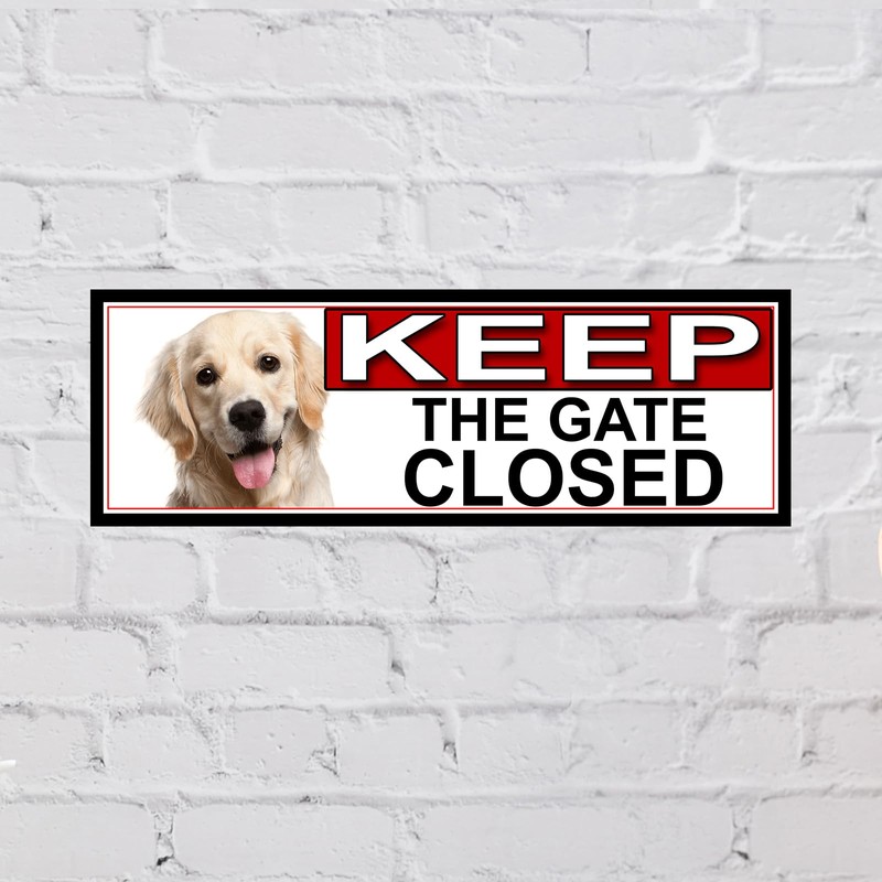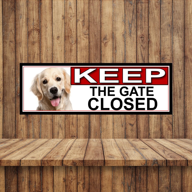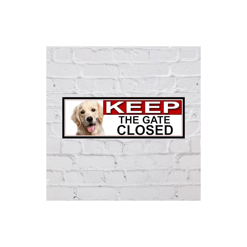 SHAWPRINT Golden Retriever KEEP THE GATE CLOSED METAL GATE SIGN 266mm x 87m. (761H2)