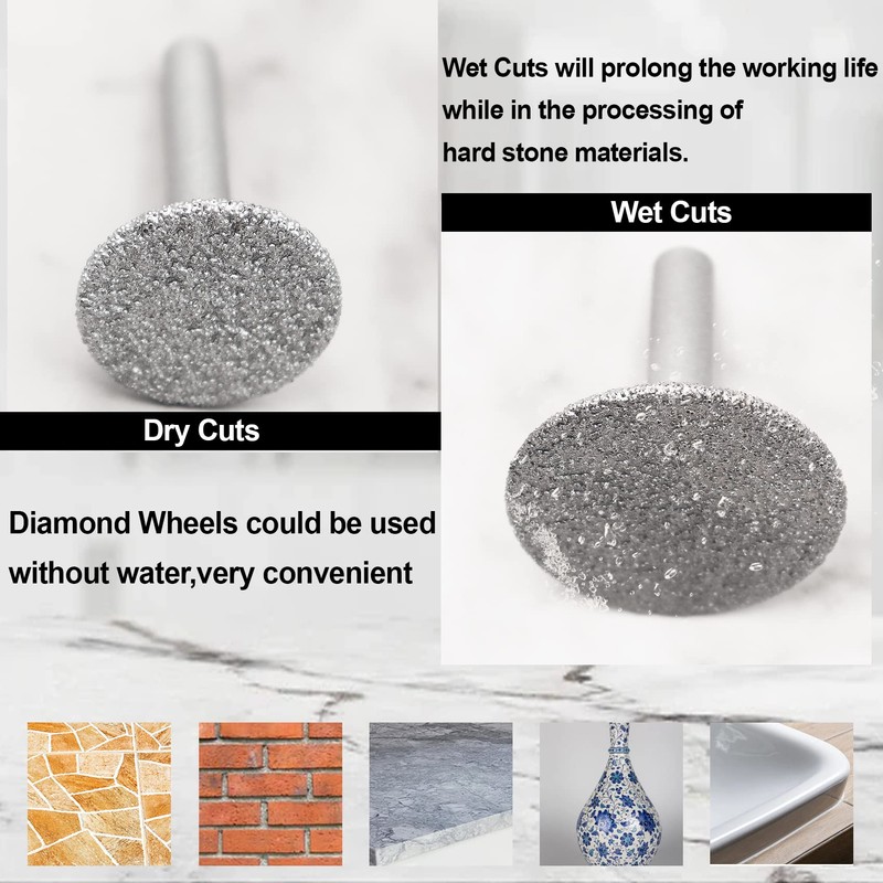 - Great for cutting, sawing and carving of hard materials, such as tiles, marble, concrete, brick, porcelain, ceramics. Not recommended for metal and wood