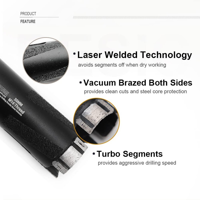 SHDIATOOL Laser Welded Diamond Core Drill Bits Dia 35MM with M14 Thread for Hard Granite Marble Concrete