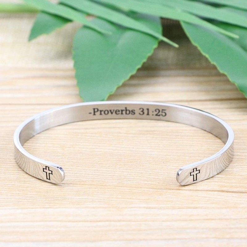 She is Clothed in Strength and Dignity and She Laughs Without Fears of the Future Christian Bracelets Religious Gifts for Women