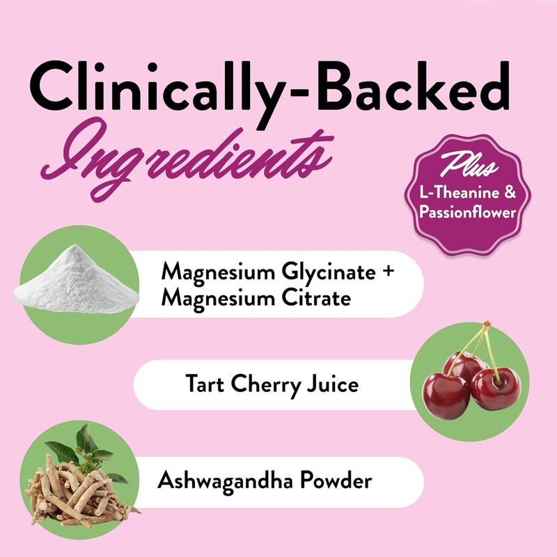 Special Ingredients: | Magnesium Citrate, Ashwagandha, Magnesium Bisglycinate, CherryPURE® Tart Cherry |
