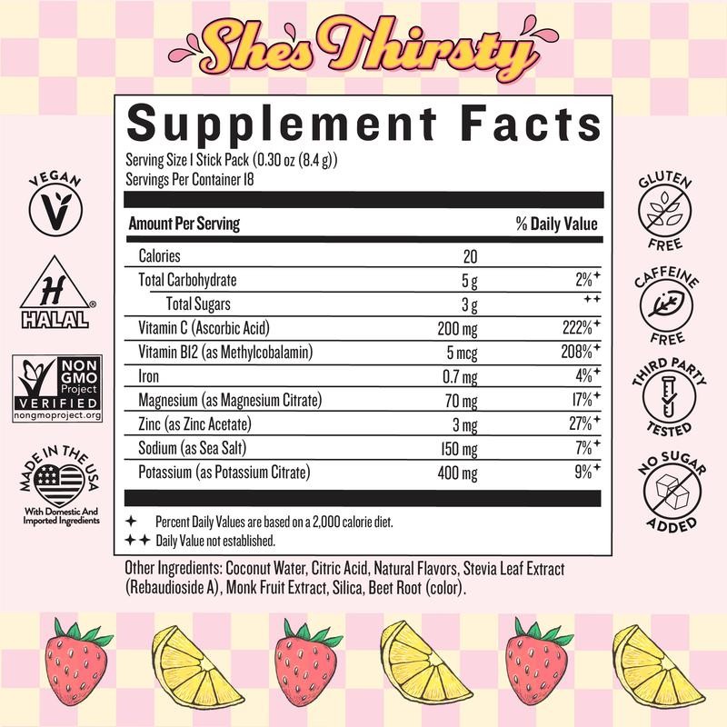 Introducing the She’s Thirsty Trio Bundle by Legendairy Milk – a 3-pack of deliciously clean electrolyte drink mixes designed to support daily hydration, adrenal function, and immune health. Each pack contains 18 single-serve sticks with a refreshing strawberry lemonade flavor, zero added sugar, and no artificial sweeteners.