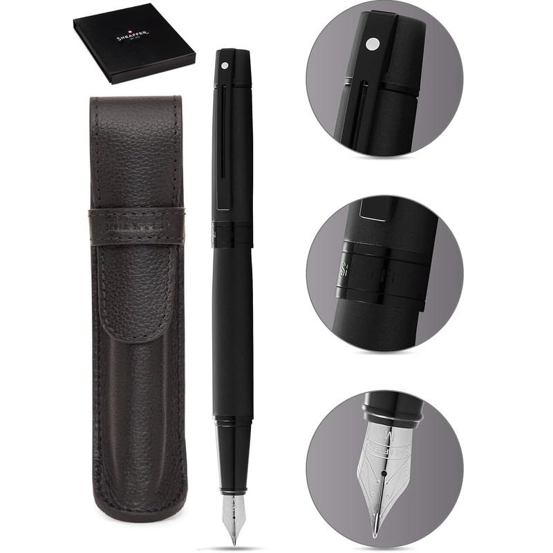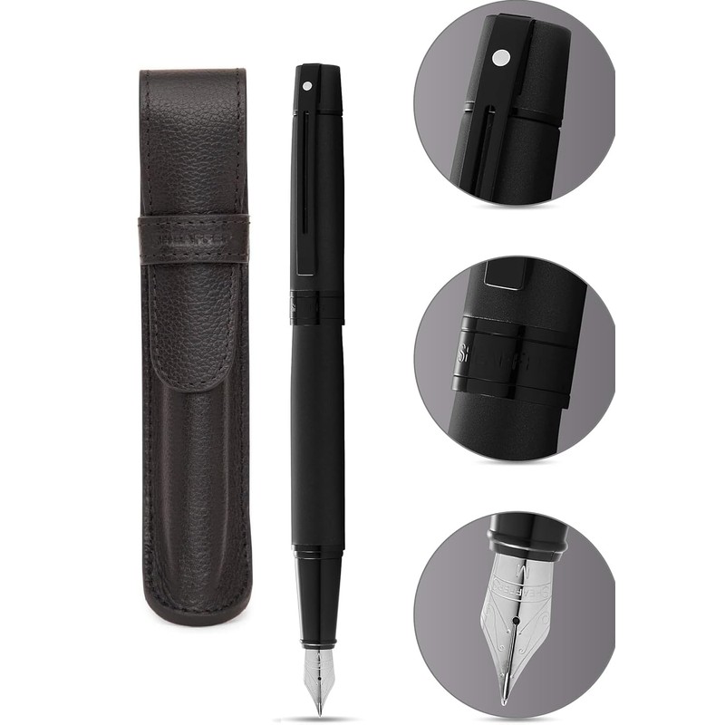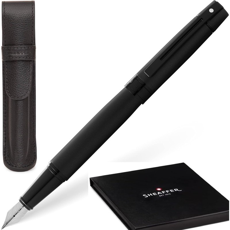 Sheaffer 300 Matte Black Lacquer Pen with PVD Trims and Matching Pouch gift Set (Fountain, Medium nib)