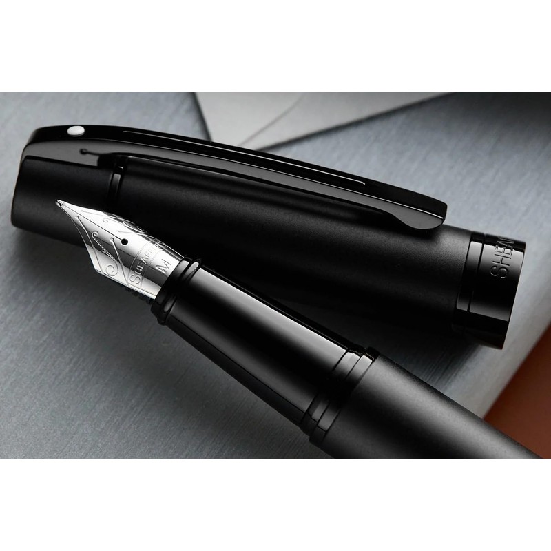 Sheaffer 300 Matte Black Lacquer Pen with PVD Trims and Matching Pouch gift S...