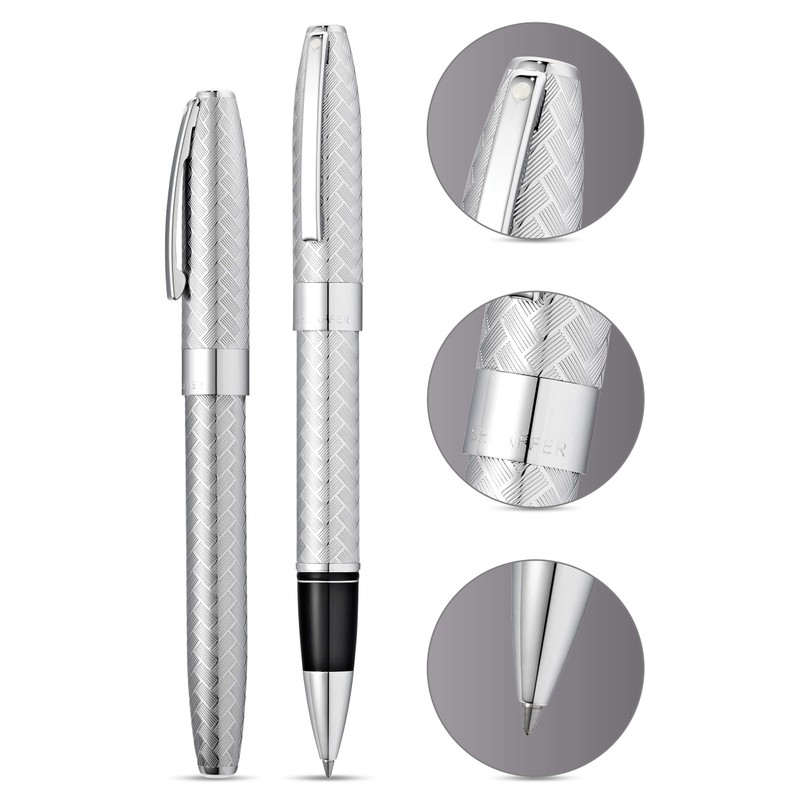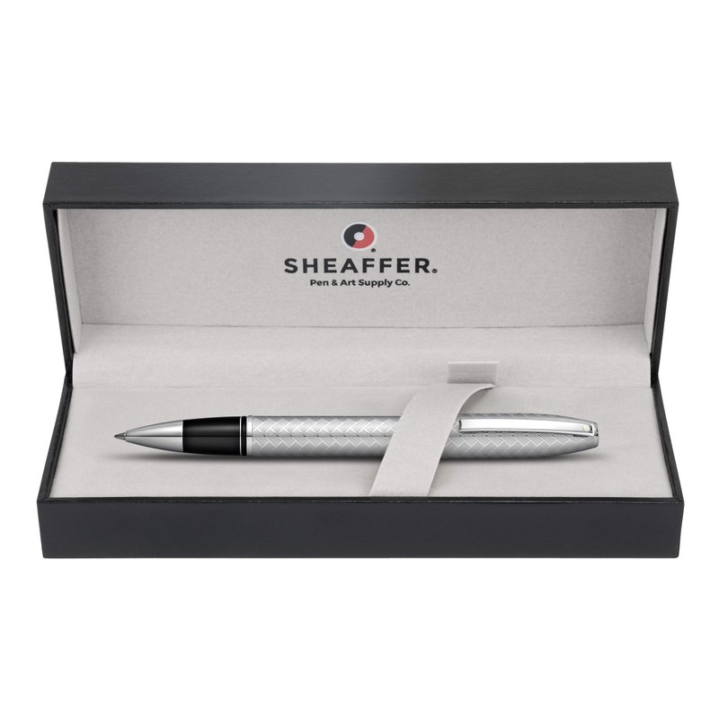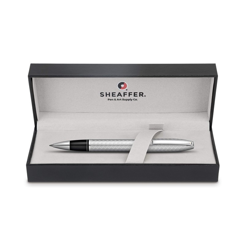 - Box contents: Sheaffer Legacy rollerball pen in chrome herringbone pattern, gel refill (C-style refill #8523SH, line width 0.7 mm, black), luxury gift box