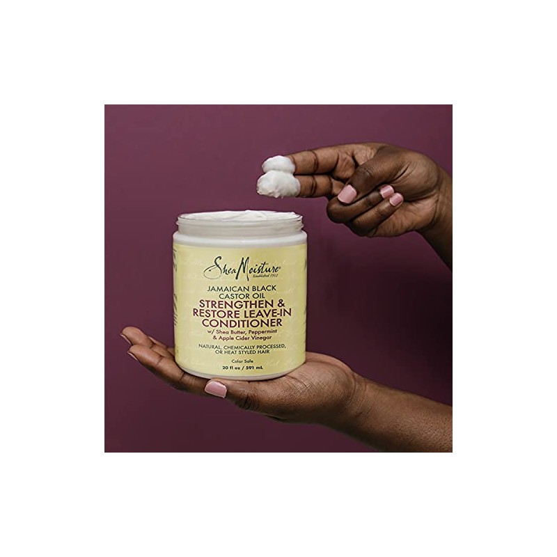 - SheaMoisture leave-in conditioner, formulated with Jamaican Black Castor Oil and fair trade Shea Butter, helps to nourish, moisturize and support elasticity to resist breakage when detangling
