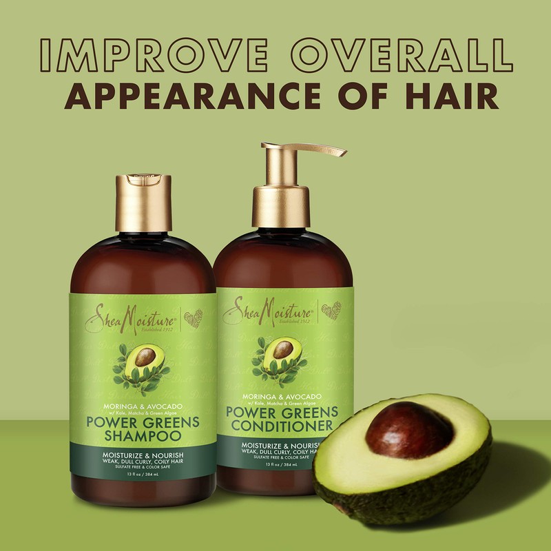SheaMoisture Power Greens Curly Hair Shampoo and Conditioner Dry Hair Moringa Avocado to moisturize, 13 Fl Oz (Pack of 2)