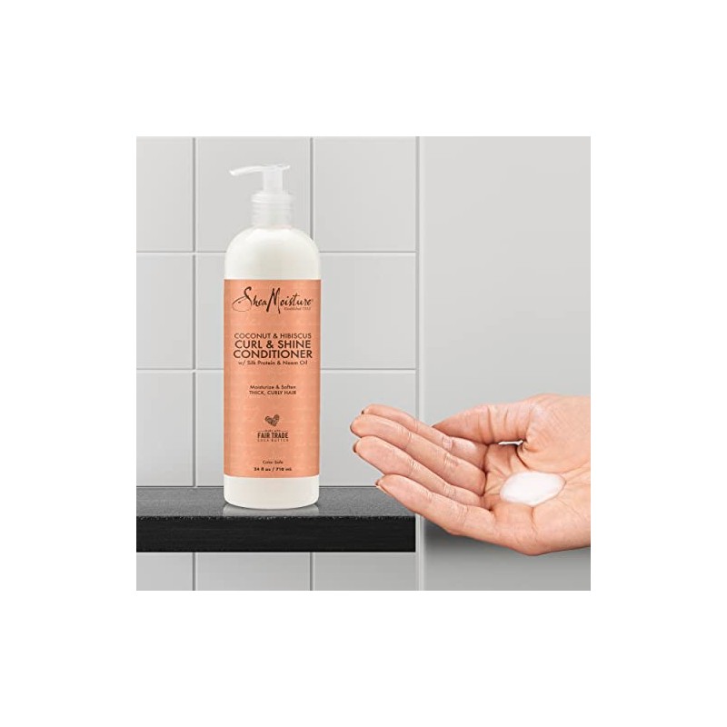 Give your hair a smooth and shiny finish by conditioning your hair with SheaMoisture's Coconut & Hibiscus Curl and Shine Silicone-Free Conditioner for curly hair. This rinse out conditioner for thick hair transforms dry, brittle hair to vibrant, bouncy waves and curls. Instantly softens and detangles dry, frizzy hair while infusing your curls with intense moisture. This Curl & Shine Conditioner pumps up the hydration and leaves you with more moisturized curls after just one use. Also leave you with a show-stopping shine, irresistible softness, and beautifully defined natural curl pattern. Watch your hair shine! How to Use: After shampooing with SheaMoisture Shine & Curl Shampoo, apply the Coconut & Hibiscus Conditioner generously and use a comb to evenly distribute the conditioner for hair. Leave it in for 3 minutes, rinse, and style as desired. Curls are left vibrant, bouncy and healthy looking with a soft feel and brilliant shine. Our Story: SheaMoisture is the legacy of Sofi Tucker, a pioneering mother of four and an entrepreneur, who sold Shea Butter, African Black Soap and homemade beauty preparations in Sierra Leone in 1912. We honor her vision by continuing to formulate with Raw Shea Butter handcrafted by women in Africa.