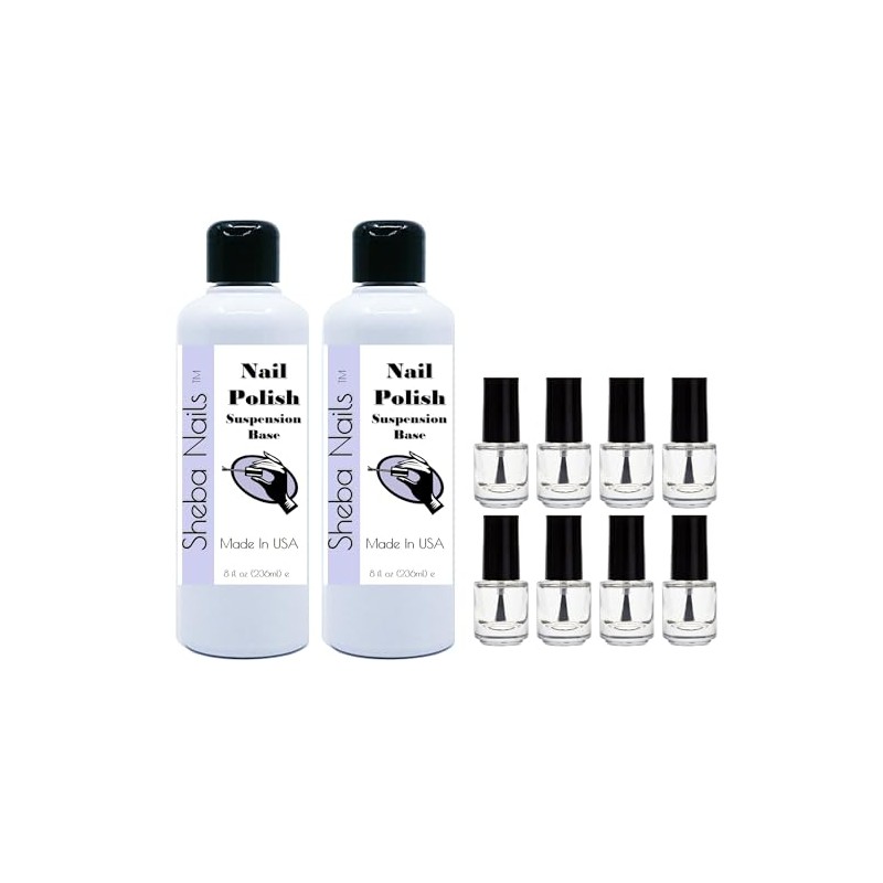 • Sheba Nails Nail Polish Mixing Suspension Base - 2 Pack of 8 ounce bottles (16 oz total) PLUS 8 Empty Mini 4ml Nail Polish Bottles with Cap & Brush