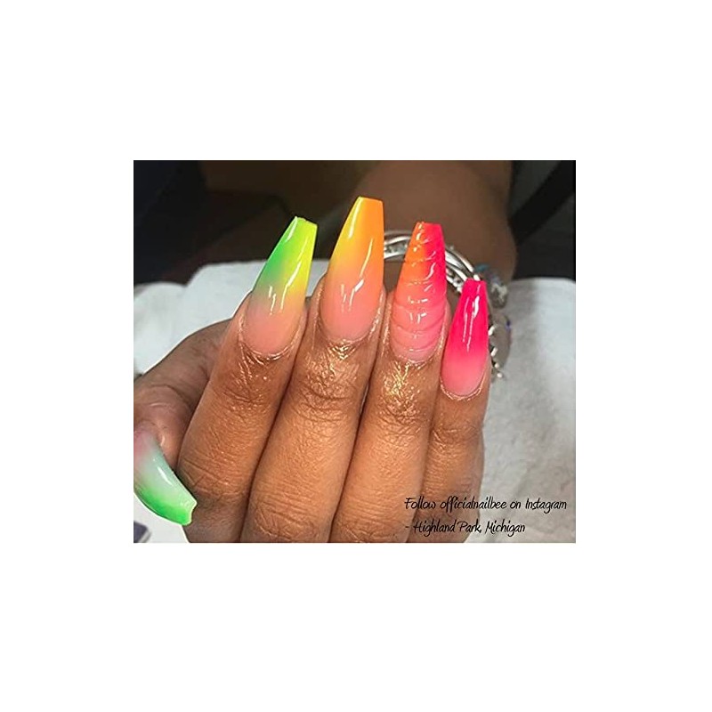 - Quantity of (1) 1oz. Dipcrylic Dipping Powder - Swatch shown is three layers over clear nail tip. GLOWS IN BLACK LIGHT