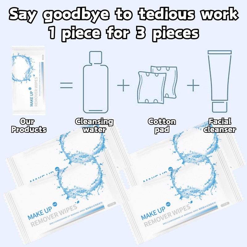 Introducing our 10pcs Individually Packaged Makeup Remover Wipes, designed to provide a superior cleansing experience while being gentle on your skin and the environment. These wipes are a must-have for your beauty routine, offering convenience, efficacy, and skin-loving benefits.