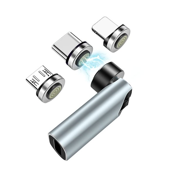 SHEEAST USB C Magentic Adapter 540 Degree Rotation 3 in 1 QC 3.0 Fast Charging Max Support 3A, Silver