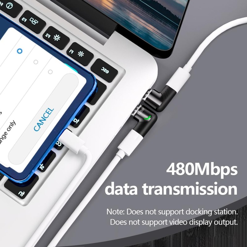 PD 100W Fast Charging and 480 Mbps Data Transmission: SHEEAST magnetic usb c adapter right angle 2 pack 5pin is up to support 100W PD quick charge and 480mbps data transmission. Note: Not support video output.