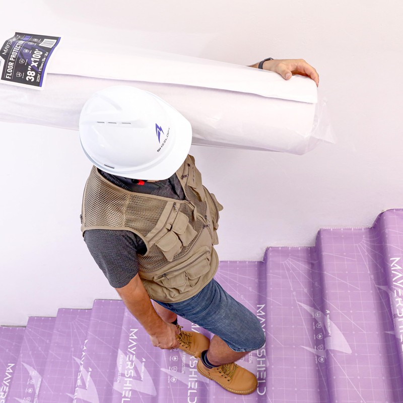Sheeldify Mayershield 38"x100' Self-Adhesive Heavy-Duty Temporary Floor Protection 4-Layer Tech Renovation, Remodeling, Moving - Professional Floor, Tile, Surface Covering (X-350G 38"x100' Lavender)